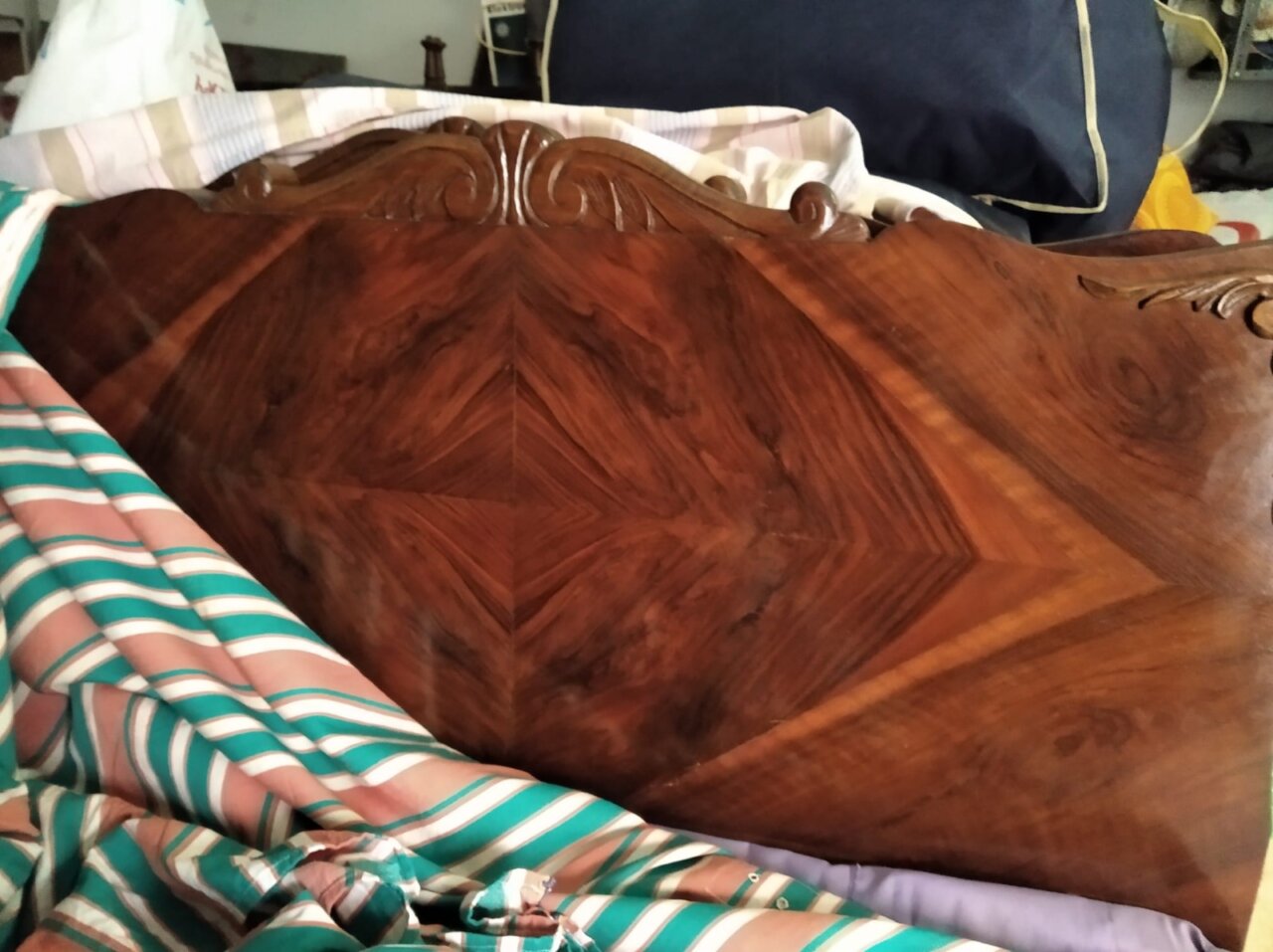 SE VENDEN 2 camas de 105 de madera con marquetería, con sus tableros, mesita, comodín y espejo. 100 euros por todo. Tel.: 646 13 22 45